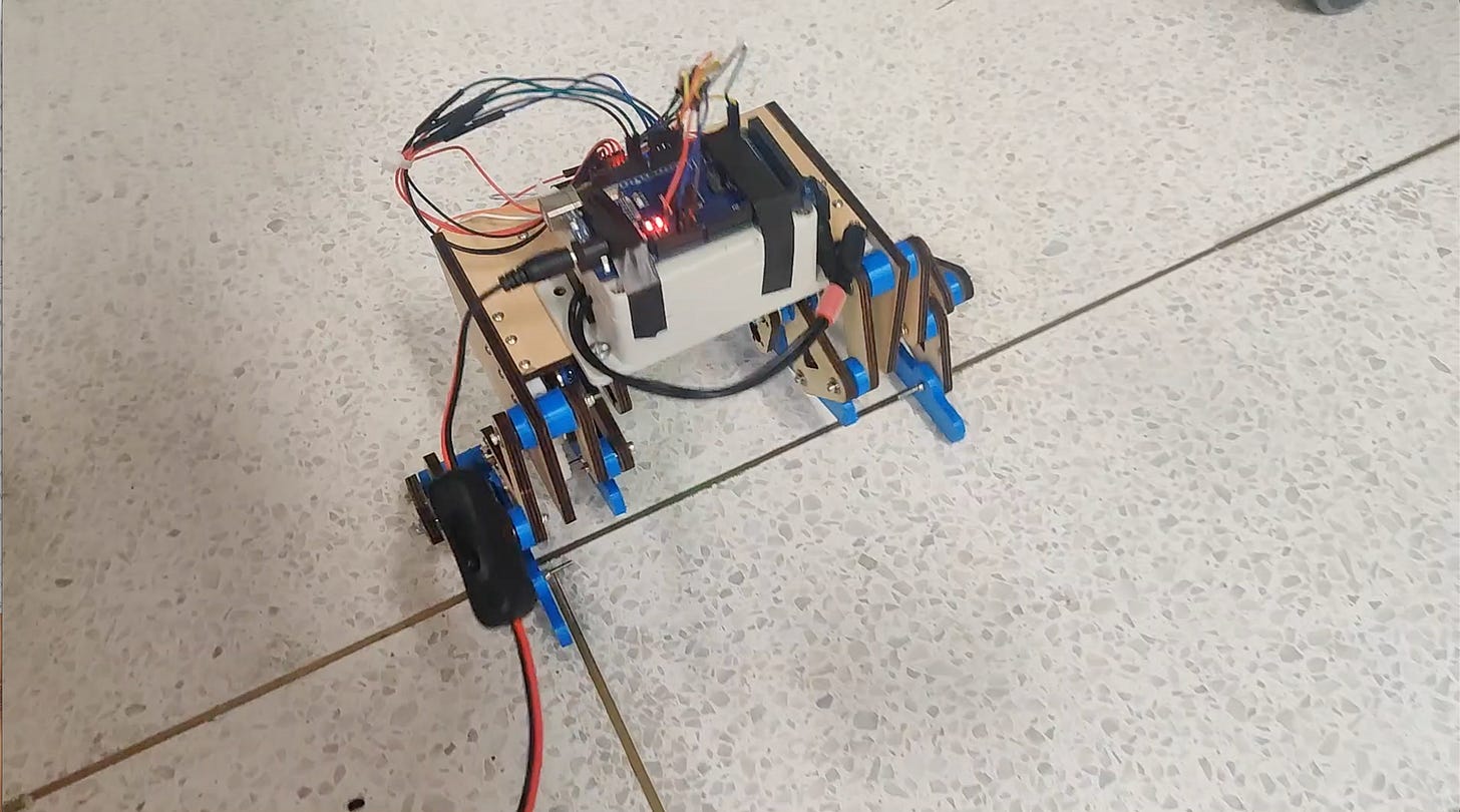 This Robot Walker results from a collaboration that started in Summer 2022, and continues into 2023. The UCInspire program (https://sites.uci.edu/ucinspire/) connected me and my student Jiaji Li with Chenhao Liu at Southern University of Science and Technology in Sichuan, China, also known as SUSTech. This four legged walker has two actuators, one for each side, which are position controlled to perform full movement, forward, backwards, and turning right and left. It is a very nice prototype with great opportunities for further work.